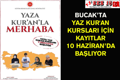 Bucak’ta da Camiler ve Kur’an Kurslarında gerçekleştirilen yaz Kur’an Kursları için kayıtlar bu yıl da 10 Haziran 2024 tarihinde başlayacak. Konuyla ilgili olarak Bucak İlçe Müdürlüğü tarafından sosyal medya üzerinden yapılan paylaşımda; “Her sene milyonlarca çocuğun Kur'an-ı Kerim ve dini bilgiler öğrendiği yaz Kur’an kursları 1 Temmuz 2024 Pazartesi günü başlıyor.