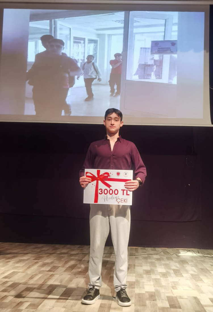 Öğrenci ödülü İlçe Milli Eğitim Müdürü Bekir Canavar tarafından verildi. İkinciliği Bucak Şehit Muhittin Talha Çalışkan Anadolu İmam Hatip Lisesi öğrencisi Ahmet Hamdi Bera Gökçen aldı ve 3 bin TL’lik ödülün sahibi oldu.