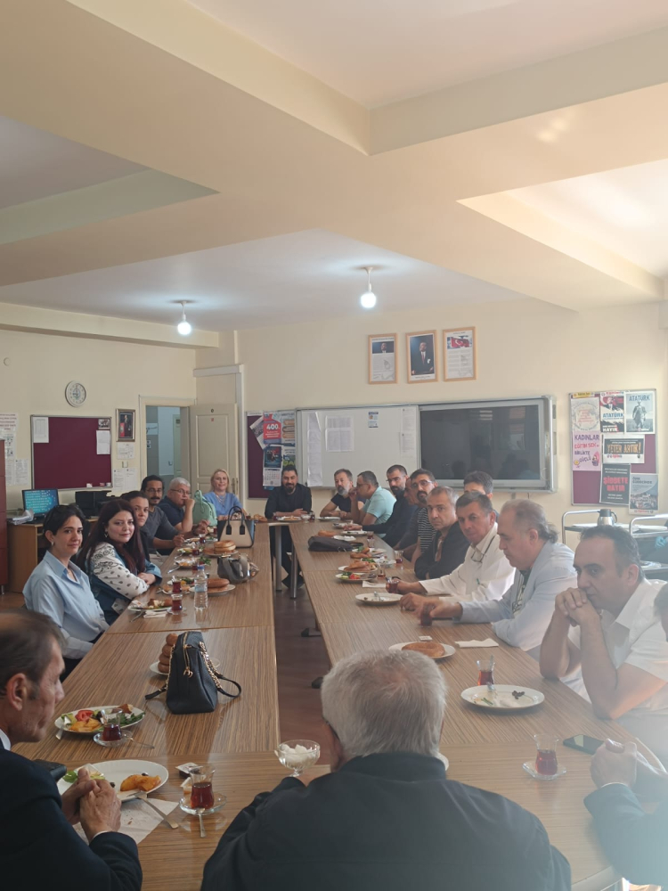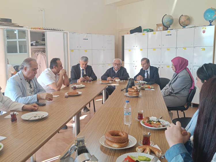 Hayırsever İş İnsanı Mehmet Cadıl simit dağıtımının ardından idareciler ve öğretmenlerle birlikte kahvaltıda bir araya geldi.