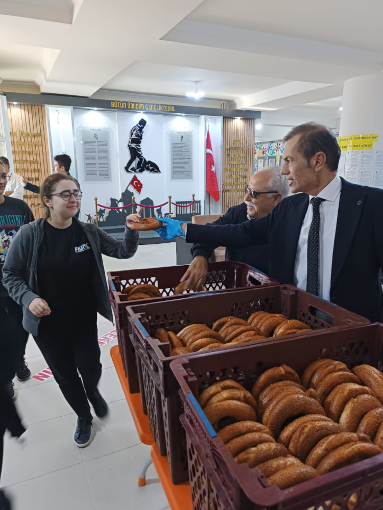 Bu kapsamda Eğitim Gönüllüsü İş İnsanı Mehmet Cadıl, Korkuteli Fatma-Mehmet Cadıl Fen Lisesi’ndeki öğrencilere simit dağıtarak, öğrencilerin yanlarında olduğunu hissettirdi.