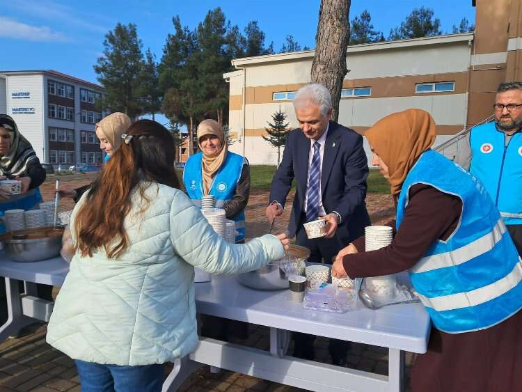 Bucak İlçe Müftüsü İbrahim Keser başkanlığında, gönüllüler tarafından 300 öğrenciye meşhur Bucak Tarhana çorbası ikram edildi.