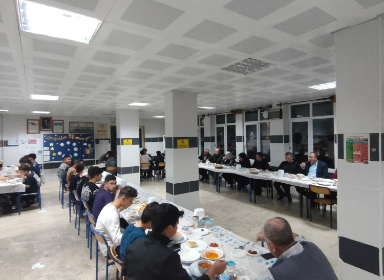 Program kapsamında iftar öncesinde sayın Ahmet Coşkuner de pansiyonda kalan yatılı öğrencilerle iş dünyası, iş ahlakı, organize sanayi bölgemizdeki istihdam olanakları gibi konularda bilgilendirmede bulunup kendi hayatından da örnekler vererek motivasyon konuşması yaptı. Kıymetli misafirlerimize bizleri kırmayarak iftar programımıza katıldıkları için okulumuz adına teşekkür ederiz” denildi.
