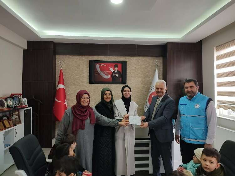 Aralarında topladıkları 4 bin 700 TL’yi İlçe Müftüsü İbrahim Keser'e teslim ettiler.