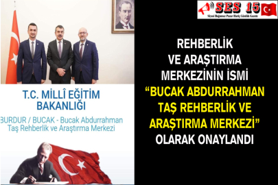AK Parti Burdur Milletvekilleri Adem Korkmaz ve Mustafa Oğuz’un Bakan Yusuf Tekin ile görüşmeleri sonucunda Ağlasun, Çeltikçi ve Bucak ilçelerine hitaben kurulması kararlaştırılan Rehberlik ve Araştırma Merkezinin ismi eğitim dalında yıllarını veren merhum Abdurrahman Taş’ın ismi verilerek “Bucak Abdurrahman Taş Rehberlik ve Araştırma Merkezi” olarak onaylandı.
