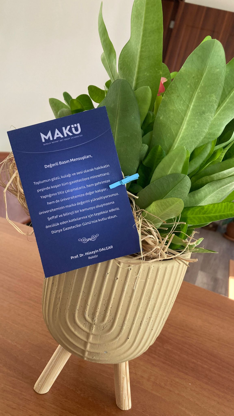 Mehmet Akif Ersoy Üniversitesi Rektörü Prof. Dr. Hüseyin Dalgar, 21 Ekim Dünya Gazeteciler Günü ve Basın Bayramı dolayısıyla çiçek göndererek Kanal 15, Bucak FM , Ses 15 Gazetesi yönetimi ve çalışanlarının Basın Bayramını kutladı.