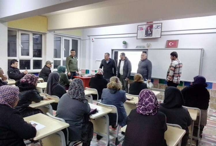 Beldede Kocaaliler Belediye Başkanı Selahatdin Gökçe, İşleme Pazarlama kursiyerleri, vatandaşlar ile beldede faaliyete başlayan Botanika Tarım işletme sahibi İbrahim Dedeli bir araya gelerek faaliyetler hakkında bilgi verdi.