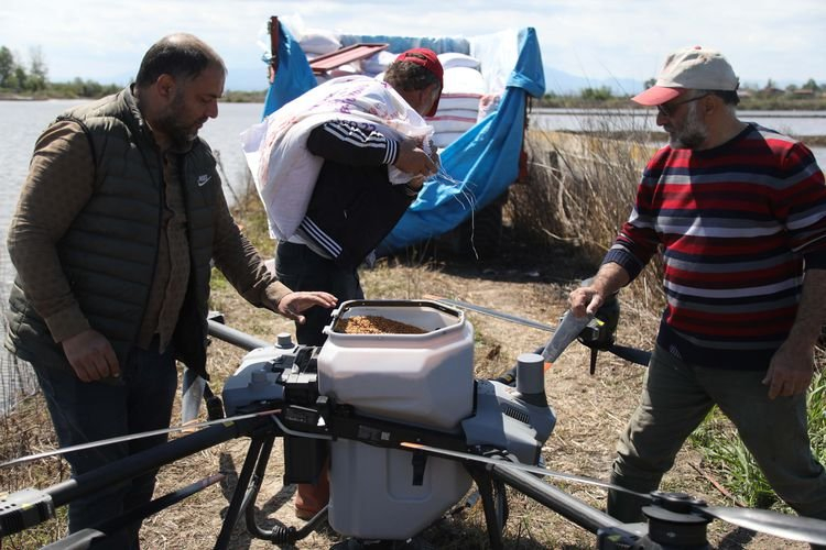 Edirne'nin İspala ilçesinden sonra Türkiye'de en çok çeltik üretiminin yapıldığı Samsun'un Bafra ilçesinde zaman ve maliyetten tasarruf sağlayan Zirai İnsansız Hava Aracı (ZİHA) ile ekim yaygınlaşıyor.