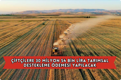 Tarım ve Orman Bakanlığı, 30 milyon 54 bin liralık tarımsal destekleme ödemesinin çiftçilerin hesaplarına aktarılacağını duyurdu.