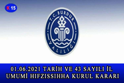 Umumi Hıfzıssıhha Kanunun 23. Maddesine göre, 01.06.2021 Salı günü saat 09.00’da Burdur Valisi Ali Arslantaş başkanlığında toplanan İl Umumi Hıfzıssıhha Kurulu tarafından aşağıdaki kararlar alınmıştır. Burdur Valiliğinden yapılan açıklama şöyle; “Koronavirüs (Covid-19) salgınının toplum sağlığı ve kamu düzeni açısından oluşturduğu riski yönetme ve hastalığın yayılım hızını kontrol altında tutma amacıyla, salgınla mücadele sürecinin temel prensipleri olan temizlik, maske ve mesafe kurallarının yanı sıra hayatın her alanına yönelik uyulması gereken kurallar ve önlemler; salgının genel seyrinin ve Sağlık Bakanlığı ile Koronavirüs Bilim Kurulunun önerilerinin değerlendirilmesi sonucunda Cumhurbaşkanlığı Kabinesinde alınan kararlar doğrultusunda belirlenmektedir. Bu çerçevede gerek 14 Nisan 2021 tarihinden bu yana sırasıyla uygulanan kısmi kapanma, tam kapanma ve kademeli normalleşme tedbirleri ile birlikte sosyal izolasyonun artırılması gerekse aziz milletimizin tedbirlere uyum noktasındaki sağduyulu ve fedakârca yaklaşımı sonucunda günlük vaka, hasta ve ağır hasta sayılarında ciddi bir düşüş yaşandığı kamuoyunun malumudur. Öte yandan hep birlikte elde edilen bu başarının sürdürülmesi, salgının yayılımının kontrol altında tutulması ve ivmelenen aşılama faaliyetleri ile birlikte kalıcı normalleşmenin sağlanması için salgınla mücadele tedbirlerine riayet etmek önümüzdeki dönemde de önemini korumaktadır. Bu doğrultuda salgının seyrinde yaşanan gelişmeler ile Sağlık Bakanlığı ve Koronavirüs Bilim Kurulunun tavsiyeleri, Sayın Cumhurbaşkanımızın başkanlığında toplanan 31 Mayıs 2021 tarihli Cumhurbaşkanlığı Kabinesinde ele alınarak; Haziran ayı boyunca uygulanacak olan kademeli normalleşme sürecinin ikinci etabı kapsamında aşağıdaki tedbirlerin 1 Haziran 2021 Salı günü saat 05.00’ten itibaren hayata geçirilmesi gerektiği değerlendirilmiştir. Bu doğrultuda İçişleri Bakanlığının 01.06.2021 tarihli E-89780865-153-8878 sayılı Genelgesine istinaden İl Umumi Hıfzıssıhha Kurulumuzca İlimizi kapsayacak şekilde; aşağıdaki kararları almıştır.