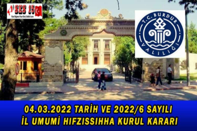 Covid 19 salgın süreci ile ilgili yapılan açıklamadan sonra Burdur İl Hıfzıssıhha Kurulu Vali Ali Arslantaş başkanlığında toplanarak salgın süreci ile ilgili yeni kararlar alındı. Konuyla ilgili olarak Burdur Valiliğince yapılan 04.03.2022 İl Umumi Hıfzıssıhha Kurul Kararında; “İl Hıfzıssıhha Kurulumuz 04.03.2022 Cuma günü saat 09.00’da Vali Ali Arslantaş başkanlığında toplanarak aşağıdaki kararlar alınmıştır. Koronavirüs (Covid19) salgını sürecinde toplumsal hayatın işleyişine ilişkin usul ve esaslar; salgının genel seyri ve Sağlık Bakanlığının önerileri doğrultusunda belirlenmektedir. Sağlık Bakanlığının 03.03.2022 tarihli ve E-¬13588366-¬149-¬377 sayılı yazısında; “Pandeminin geldiği noktada, salgının etkisinin azalması, aşılamanın yaygınlaşması, toplumsal hayatı eskisine oranla daha az etkilemesi ile birlikte alınan önlemlerin dünyada olduğu gibi ülkemizde de toplumun her noktasında kısıtlama şeklinde değil bireysel düzeyde uygulanması önemli hale geldiği” vurgulanarak maske kullanımı, HES kodu ve PCR testi istenmesine ilişkin mevcut tedbir ve kuralların yeniden düzenlenmesi istenilmektedir. Bu kapsamda;