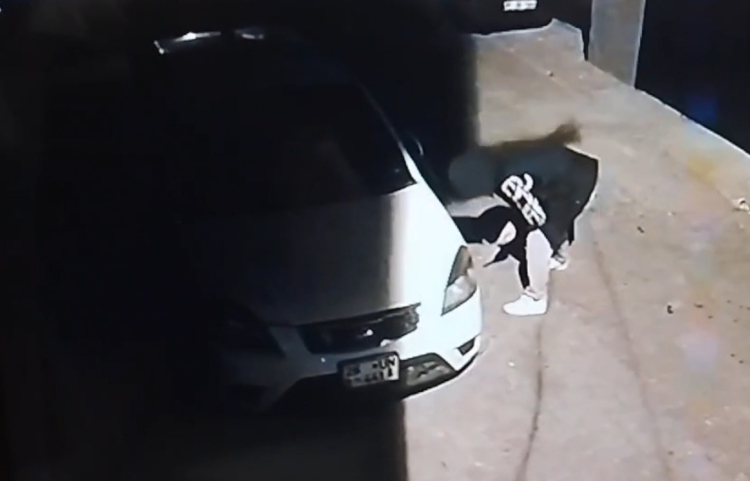 Güvenlik kamerası görüntülerine göre, 2 şüpheli bir aracın lastiğini kestikten sonra sokakta yürüyerek ilerliyor. Başka bir aracın yanından geçip uzaklaşan zanlılardan biri daha sonra dönüp bu aracın da lastiğini kesiyor. Görüntülere bu kişinin ayakta durmakta zorlandığı yansıyor.