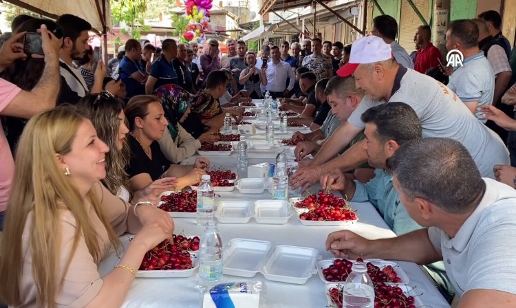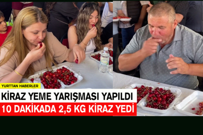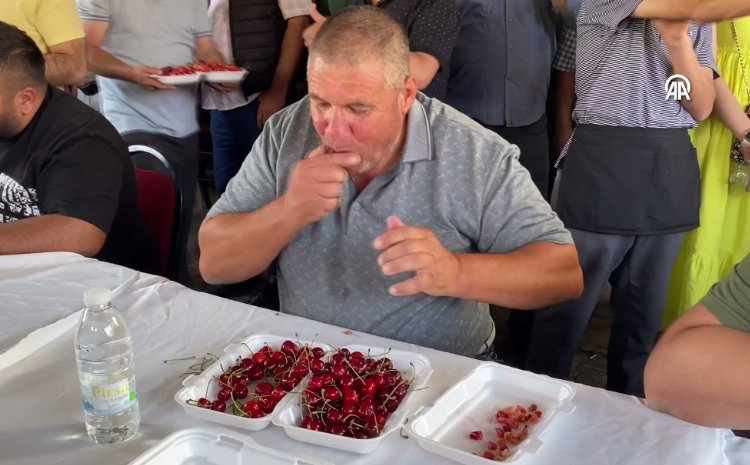 Manisa'nın Alaşehir ilçesinde, kiraz yeme yarışmasında 10 dakikada 2 kilo 450 gram kiraz yiyen yarışmacı birinci oldu.
