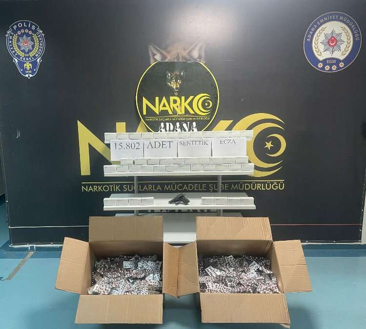Adana'nın merkez Seyhan ilçesinde 15 bin 802 sentetik ecza hapı ele geçirildi, 3 şüpheli tutuklandı.