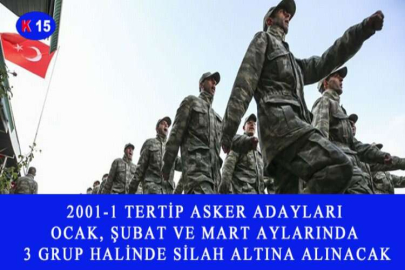 2001-1 TERTİP ASKER ADAYLARI, OCAK, ŞUBAT VE MART AYLARINDA 3 GRUP HALİNDE SİLAH ALTINA ALINACAK