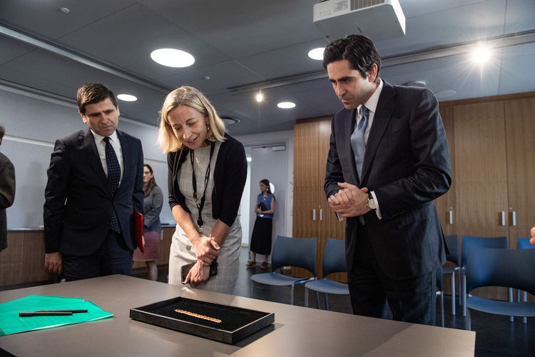 Türkiye Cumhuriyeti Kültür ve Turizm Bakanlığı yetkilileri, Türkiye'nin Boston Başkonsolosluğu'nda gerçekleştirilen törende, Manisa'nın Bintepeler bölgesinden kaçırılarak 1982'de ABD'ye getirilen altın kolyeyi, sergilendiği Boston Güzel Sanatlar Müzesi'nin görevlilerinden teslim aldı.