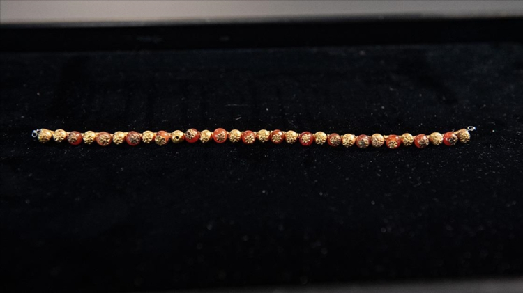 New York Kültür ve Tanıtma Ataşesi Hilal Demirel, AA muhabirine yaptığı açıklamada, kolyenin yaklaşık 20 santimetre uzunluğunda, altın ve karnelyan taşlarından yapılmış nar şeklinde boncuklardan oluştuğu bilgisini paylaştı.