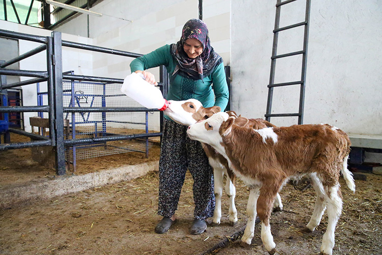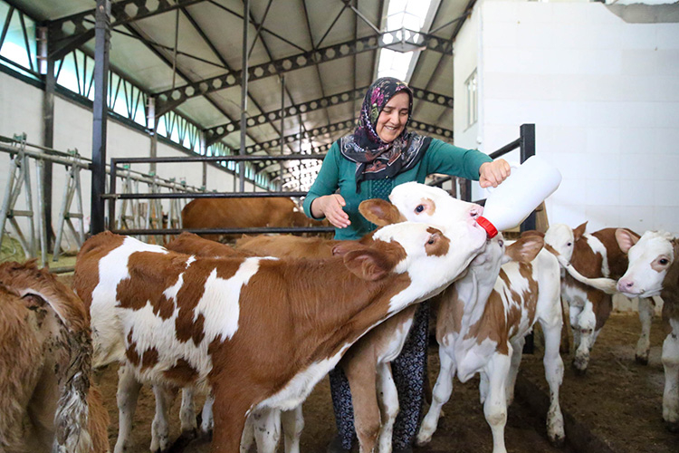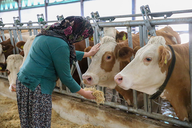 Evlendikten sonra herhangi bir işte çalışmayan 48 yaşındaki Uşaklı Süreyya Kozak, devlet desteğiyle kurduğu büyükbaş hayvan işletmesini yönetiyor.