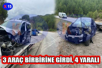 3 ARAÇ BİRBİRİNE GİRDİ, 4 YARALI