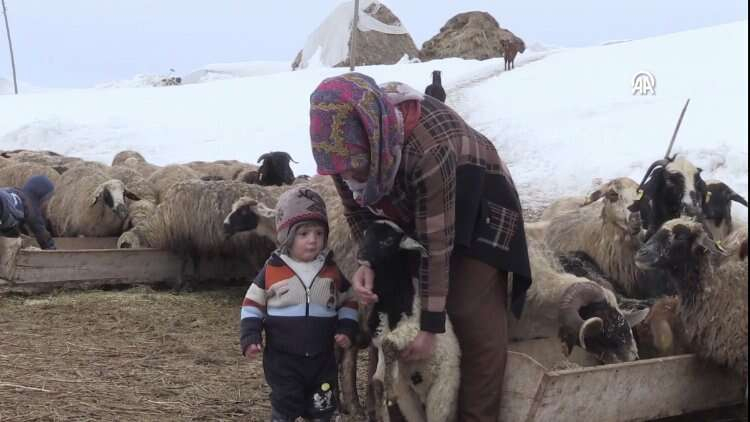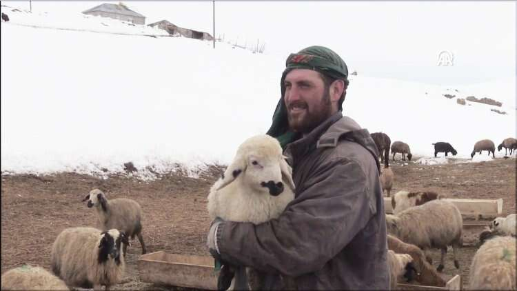 "Zamanımız hep koyunlarla geçiyor. Sabahtan akşama kadar koyunların içindeyiz. Bu iş dededen babama, ondan da bana kaldı. Ben de hayvancılık yapmaya kararlıyım. Bazen 2 metreden fazla kar yağıyor. Tipi sürekli etkili oluyor. Koyunların doğumları başladı, yılın ilk kuzuları geldi. Bazen hayvanlar hastalanıyor. Yol açılıyor ama tipiden dolayı sürekli kapanıyor. Her kapandığında Sayın Kaymakamımız yolu açtırıyor. Burası sessiz ve ıssız bir yer, kimse yok. Kurtlar sürekli geliyor. Köpeklerimiz olmazsa kurtlarla baş edemeyiz. Burada yaşamak zor ama hayvanlarımız için mecburuz. Hayvanlarımı bırakamıyorum. Başka geçim kaynağımız yok."