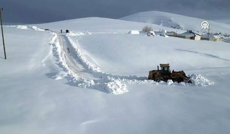 Kar kalınlığının yer yer üç metreyi bulduğu, kış boyunca tipi ve karın etkili olduğu mahallede yaşayan Emrah ve eşi Elmas Sarı ise geçim kaynakları olan küçükbaş hayvanları için evlerinden ayrılmıyor.