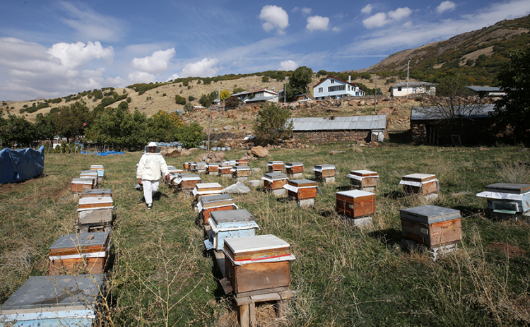 Zengin floraya sahip dağ köyünde tek başına mesleğini sürdüren Kocadağ, ilkbaharda bakımını yaptığı kovanları yaylaya bıraktı.