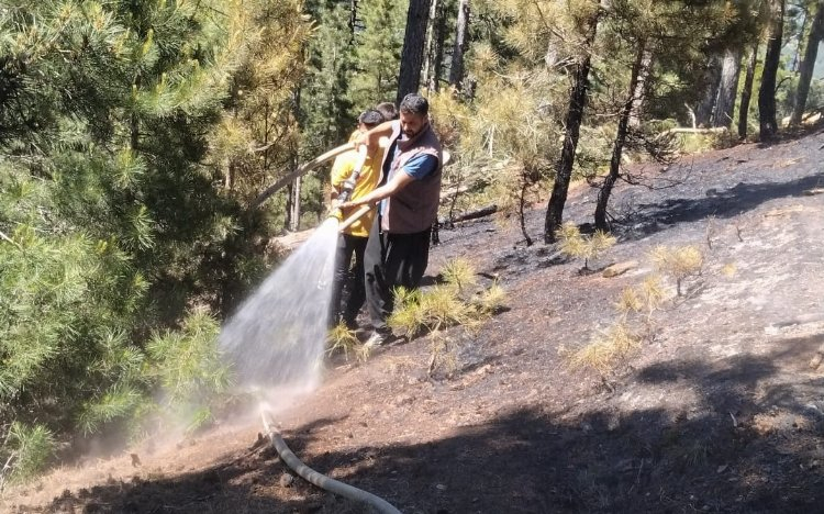 İhbar üzerine bölgeye Orman Bölge Müdürlüğü ekipleriyle 2 arazöz ve 1 su tankı yönlendirildi.