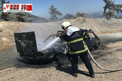 İ.T’nin kullandığı 01 FG 065 plakalı otomobil, Maran Mahallesi’nde seyir halindeyken alev aldı.