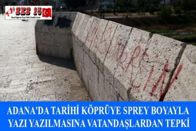 ADANA'DA TARİHİ KÖPRÜYE SPREY BOYAYLA YAZI YAZILMASINA VATANDAŞLARDAN TEPKİ