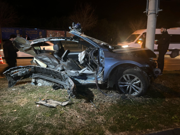Dr. Sadık Ahmet Bulvarı'nda ehliyetsiz sürücü S.K. (17) yönetimindeki 01 ACP 425 plakalı otomobil kontrolden çıkarak refüjdeki ağaca çarptıktan sonra ikiye ayrıldı.