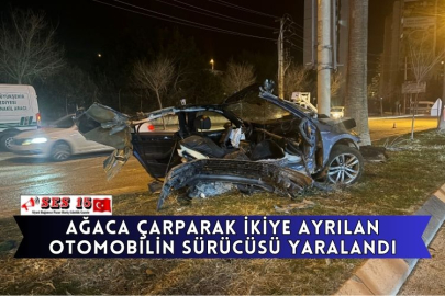 Ağaca Çarparak İkiye Ayrılan Otomobilin Sürücüsü Yaralandı
