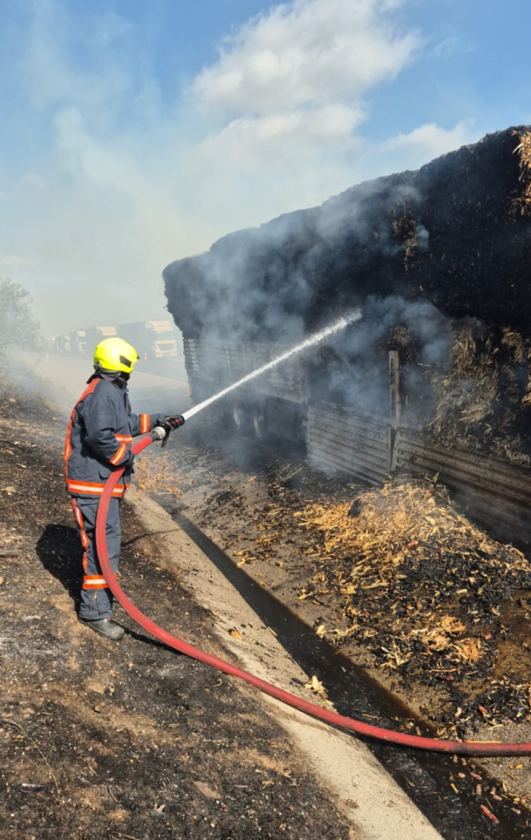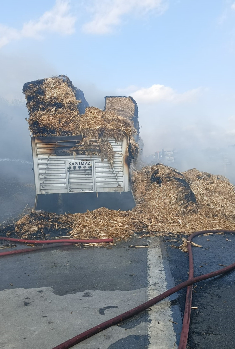 Yangının büyümesi üzerine alevler, otoyolda seyir halindeki M.A. idaresindeki 68 ED 880 plakalı saman balyası yüklü tırın dorsesine sıçradı.