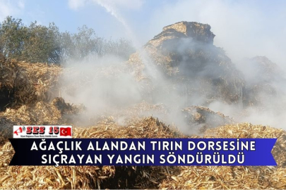 Mersin'in Tarsus ilçesinde ağaçlık alandan saman balyası yüklü tırın dorsesine sıçrayan yangın söndürüldü.