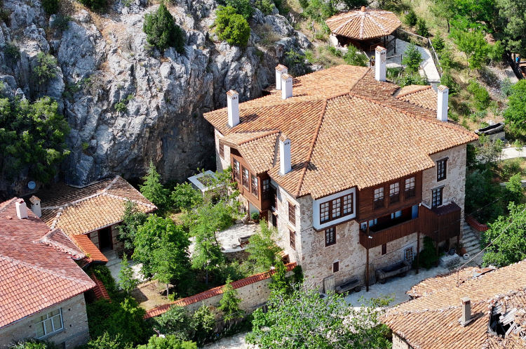 Akseki'de tarihi "düğmeli ev" tekniğiyle yapılan üç katlı, 9 odası bulunan ve geçmişte birkaç ailenin birlikte yaşadığı konak, 2012'de restore edildi.
