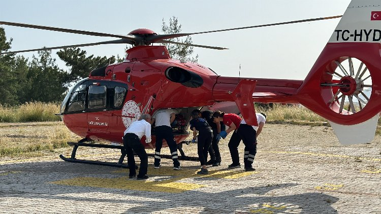 İlk müdahalesi yapılan S.S'nin sevkine karar verildi. S.S, ambulansla Kızılcaşehir Mahallesi'ndeki helikopter pistine getirildi.
