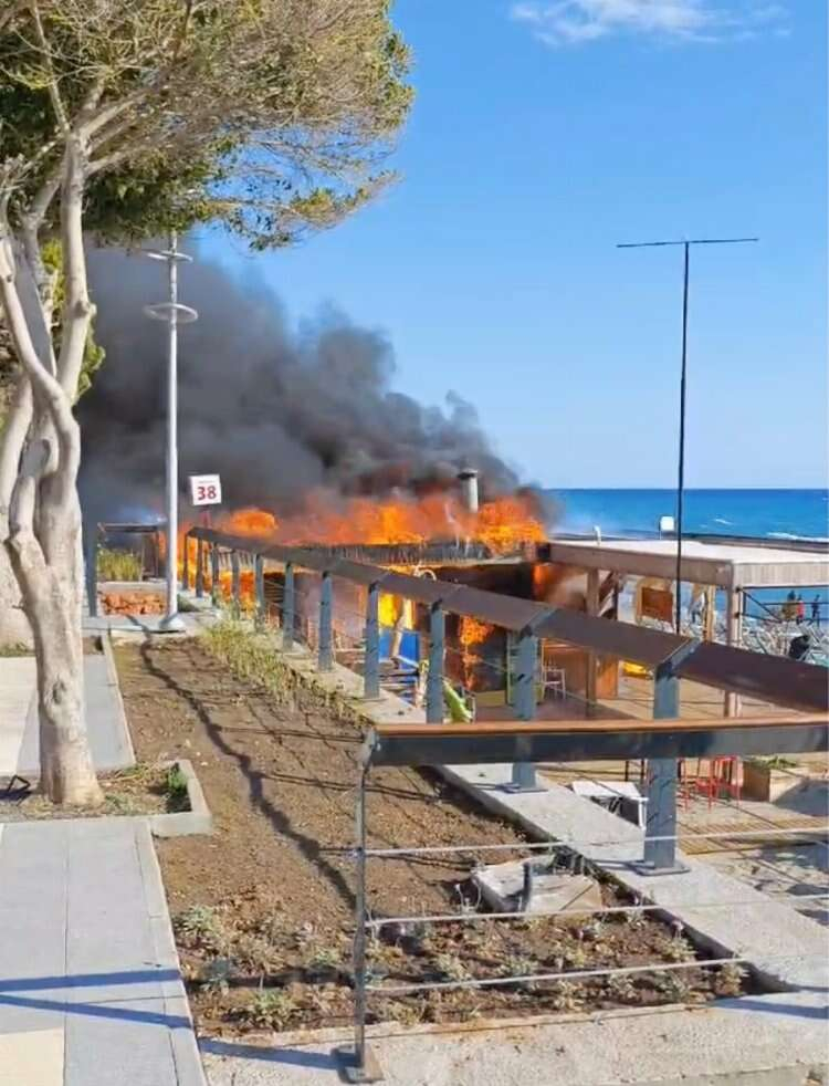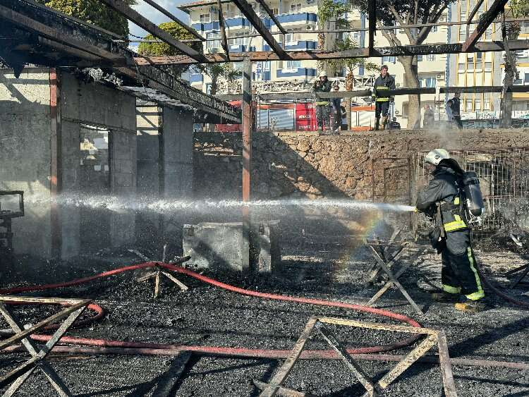Tosmur Mahallesi Keykubat Plajı'nda bir otele ait büfede henüz belirlenemeyen nedenle yangın çıktı.