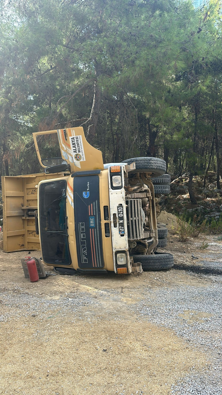 Edinilen bilgilere göre, S.B. idaresindeki Alanya Belediyesi'ne ait 07 N 0410 plakalı hafriyat yüklü kamyon, rampada şarampole devrildi. İhbar üzerine bölgeye jandarma ve sağlık ekibi sevk edildi.