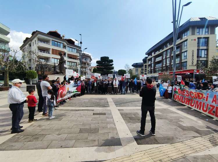 Antalya'nın Alanya ilçesinde İsrail'in Gazze'ye yönelik saldırıları protesto edildi.
