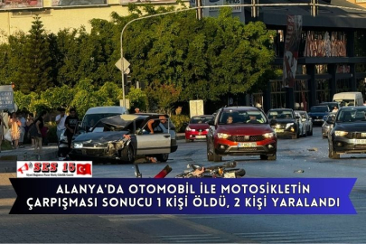 Antalya'nın Alanya ilçesinde otomobil ile motosikletin çarpışması sonucu 1 kişi öldü, 2 kişi yaralandı.