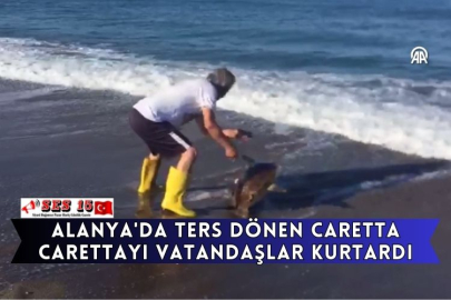 Antalya'nın Alanya ilçesinde sahile yuvasını yaptıktan sonra ters dönen caretta carettayı, vatandaşlar kurtardı.