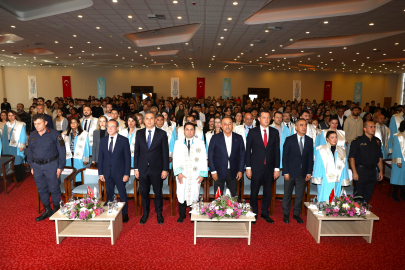 Törenin sonunda ALKÜ Diş Hekimliği Fakültesi öğrencileri beyaz önlük giydi.