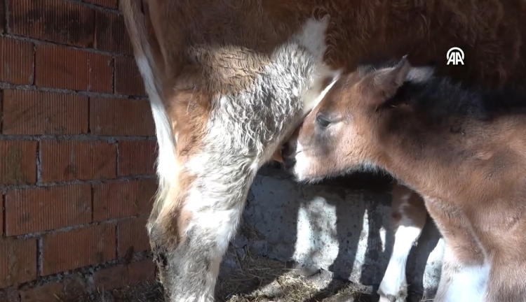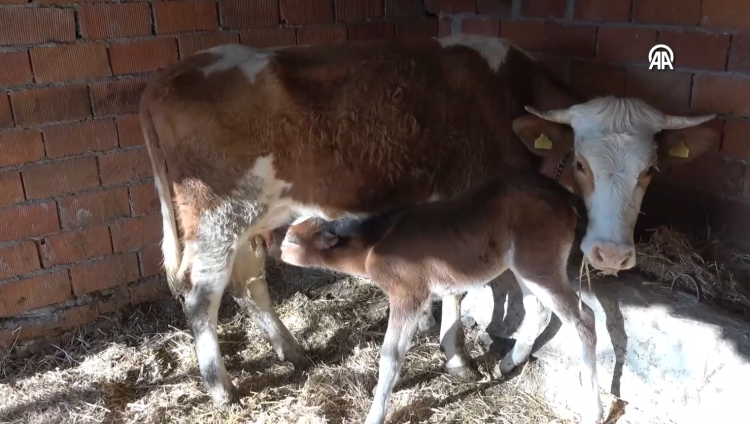 Ahırdaki "Simental" cinsi inek, bir süre sonra tayı emzirerek annelik yapmaya başladı. İneğin yanından ayrılmayan tay da çiftlik sahiplerinin adeta maskotu haline geldi.