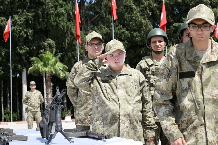 Antalya'da Dünya Engelliler Haftası kapsamında 18 engelli genç düzenlenen törenle bir günlüğüne asker oldu.