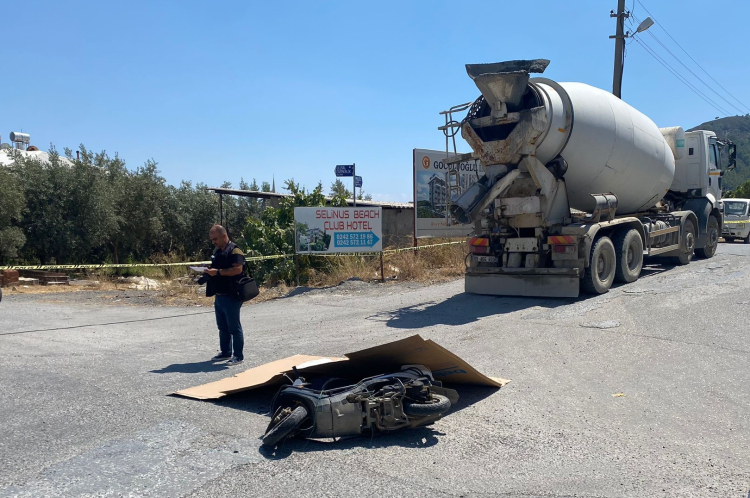 Antalya'nın Gazipaşa ilçesinde beton mikseri ile çarpışan motosikletin sürücüsü hayatını kaybetti.