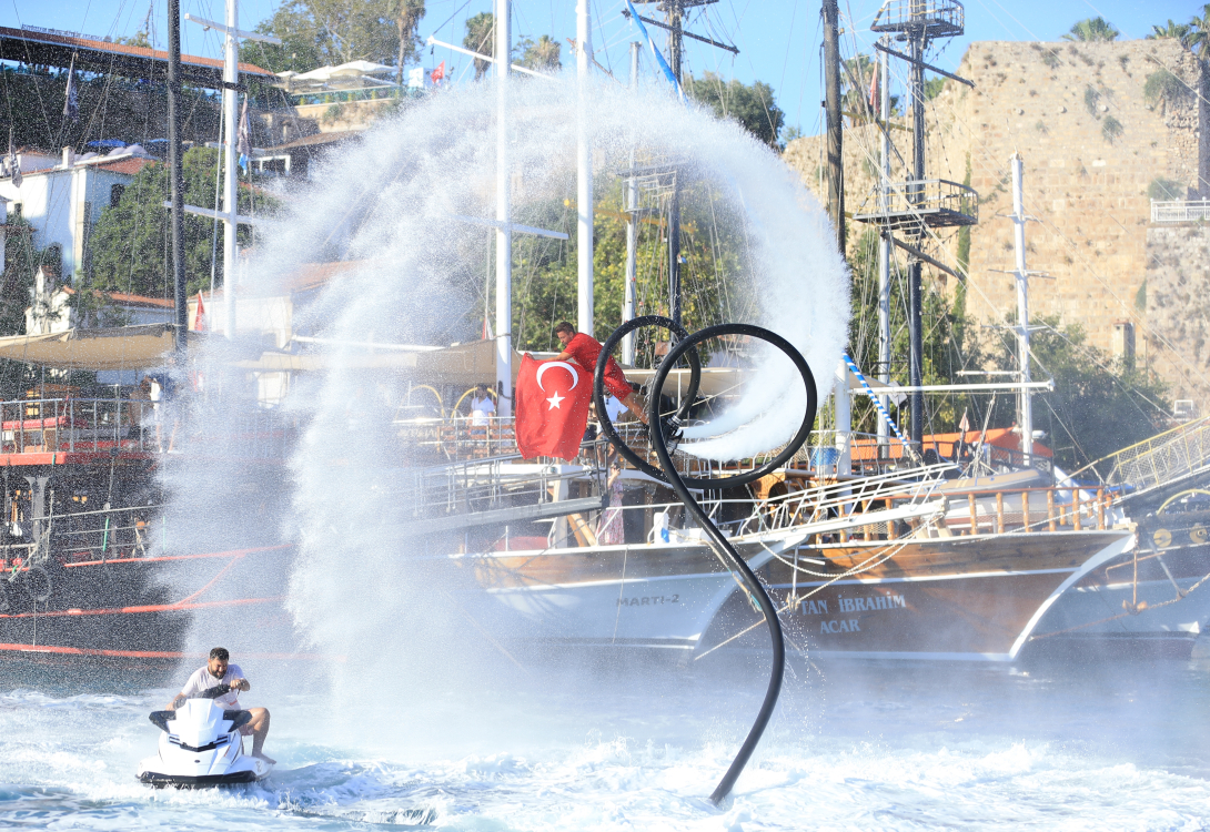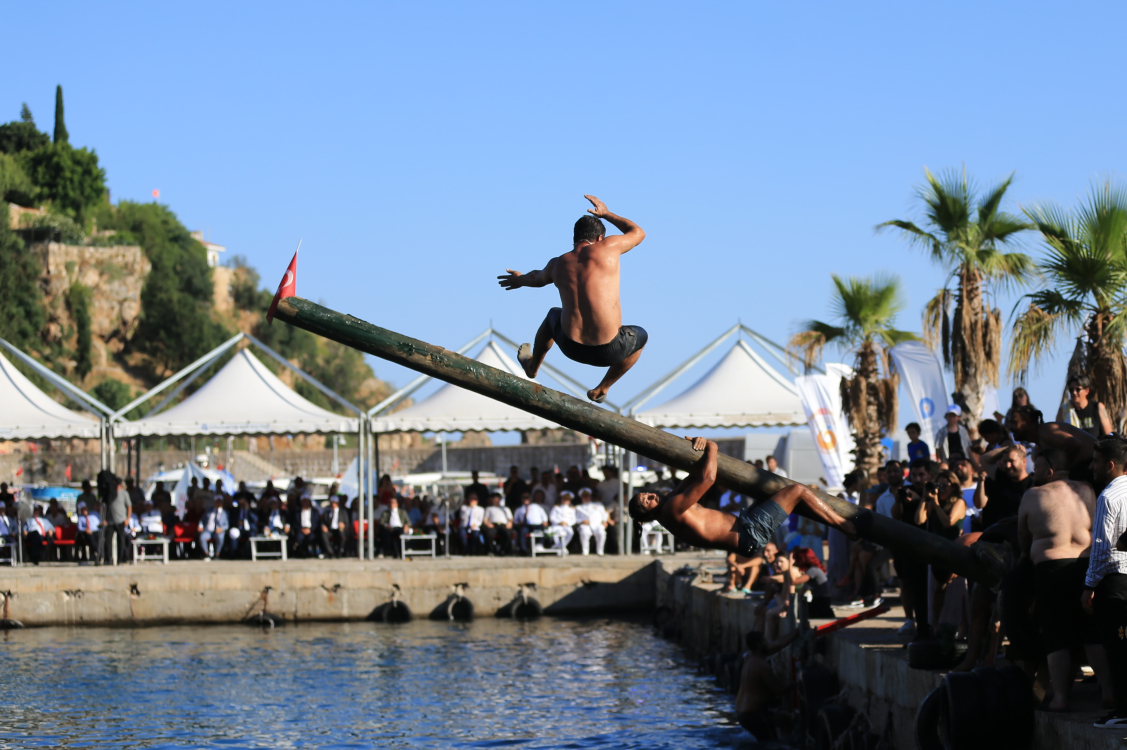Kaleiçi Yat Limanı'nda deniz şehitleri anısına suya çelenk bırakılmasıyla devam eden programda, yağlı direkten bayrak kapma, çıpa çıkartma ve yüzme yarışları ile flyboard gösterisi gerçekleştirildi.