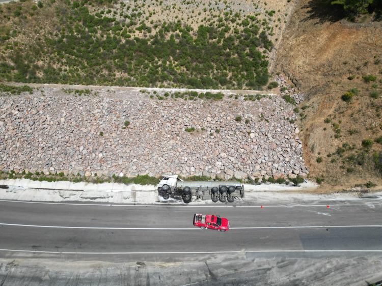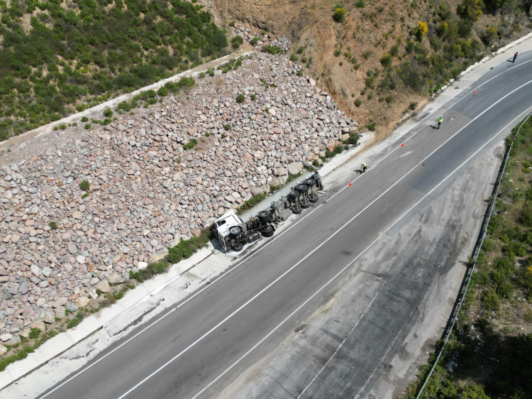 Edinilen bilgilere göre, M.A.B. idaresindeki zift yüklü 33 ANH 428 plakalı tır, Zeytinada Mahallesi D 400 kara yolunda kontrolden çıkarak devrildi.