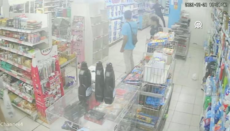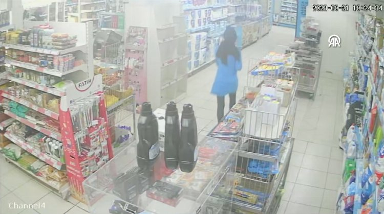 Kayıtta, market içindeki kasada görev yapan Sümeyye Yavlak'ın eşinin geldiğini gördükten sonra kaçarak kendisini depoya kilitlediği görülüyor. Markete giren saldırgan Mehmet Yavlak'ın depo önüne giderek, diğer market görevlisi kadınla eşini kapıyı açması için ikna etmeye çalıştığı görüntüler de kayıtta dikkat çekiyor.