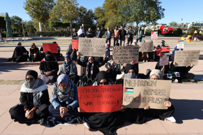 Antalya'da kadınlar tarafından, İsrail'in Gazze'ye yönelik saldırılarını protesto amacıyla oturma eylemi düzenlendi.