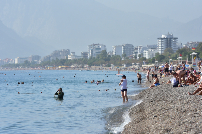 Nem oranının yüzde 70'e ulaştığı bölgede, bazı tatilciler serinlemek için denize girdi, bazıları da kumsalda güneşlendi.