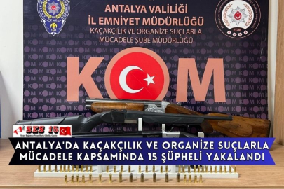 Antalya'da kaçakçılık ve organize suçlarla mücadele kapsamında son bir haftada düzenlenen operasyonlarda 15 şüpheli yakalandı.