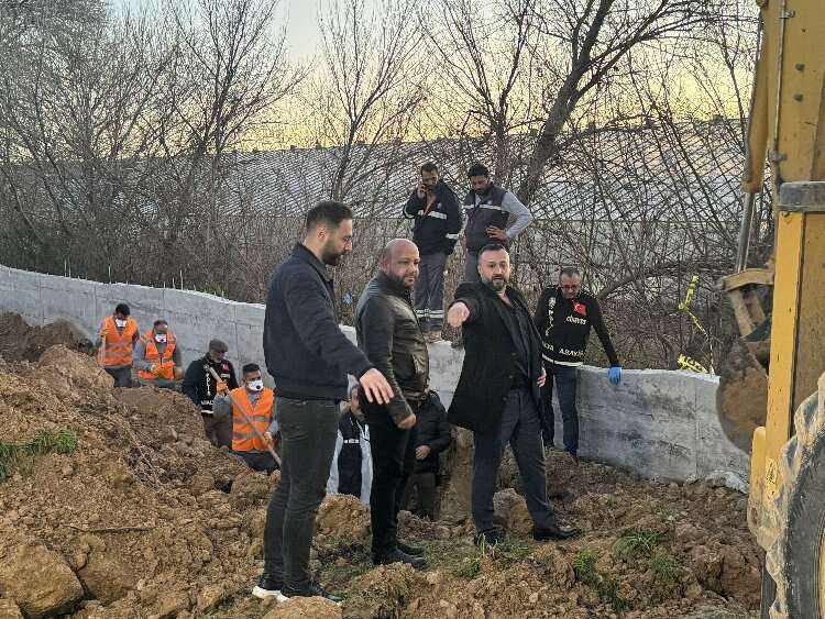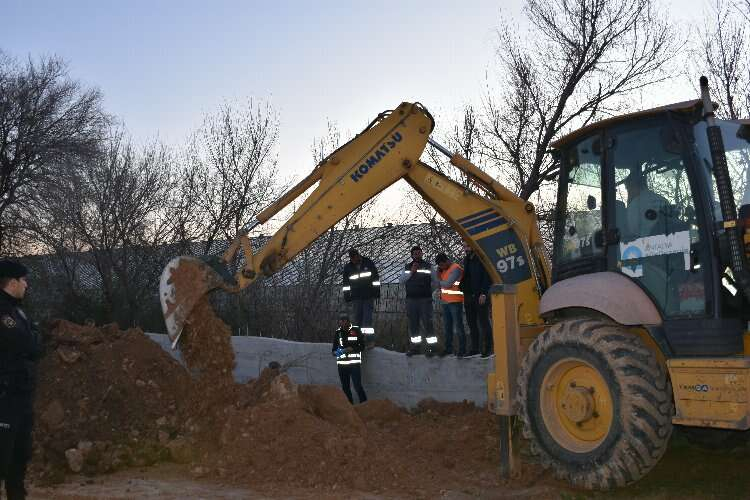 Polis ekiplerinin iş makinesi yardımıyla yaptığı kazı çalışmasında bir cansız bedene ulaşıldı.